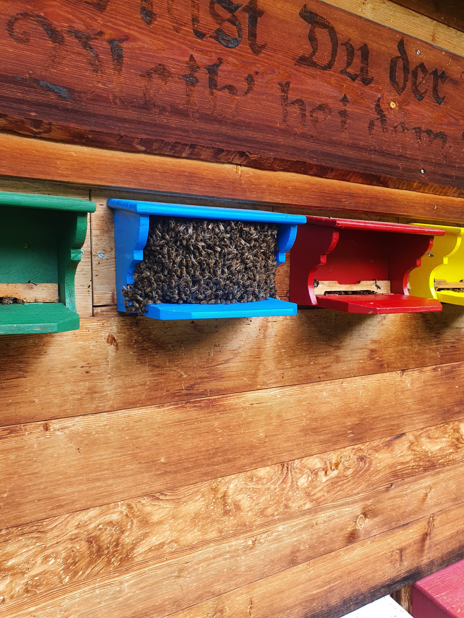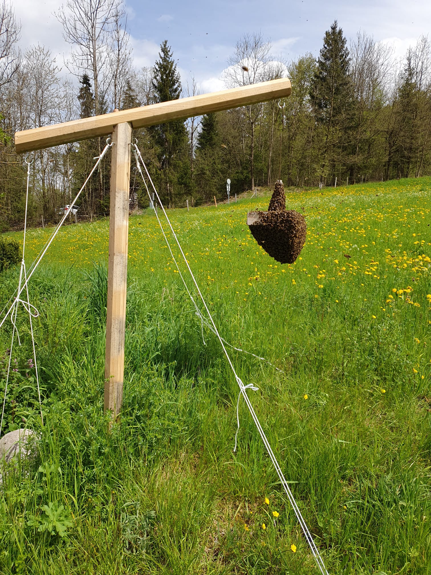 Wenn ein Bienenvolk zu gross wird, verlässt ein Teil der Bienen zusammen mit der alten Königin den Stock – ein neues Volk entsteht. Dieses sogenannte Schwärmen ist eine natürliche Form der Vermehrung und ein eindrückliches Erlebnis. Die Bienen sammeln sich in einer dichten Traube an einem Ast oder einer anderen geschützten Stelle, während Spurbienen nach einem geeigneten neuen Zuhause suchen.