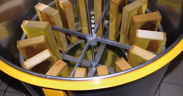 Die Honigschleuder In der Honigschleuder wird der Honig durch die schnelle Drehbewegung aus der Wabe geschleudert. Bei der Schleuderung darf der Honig auf höchstens 35°C erwärmt werden. Er fliesst in ein Lagergefäss und wird anschliessend in Honiggläser abgefüllt.